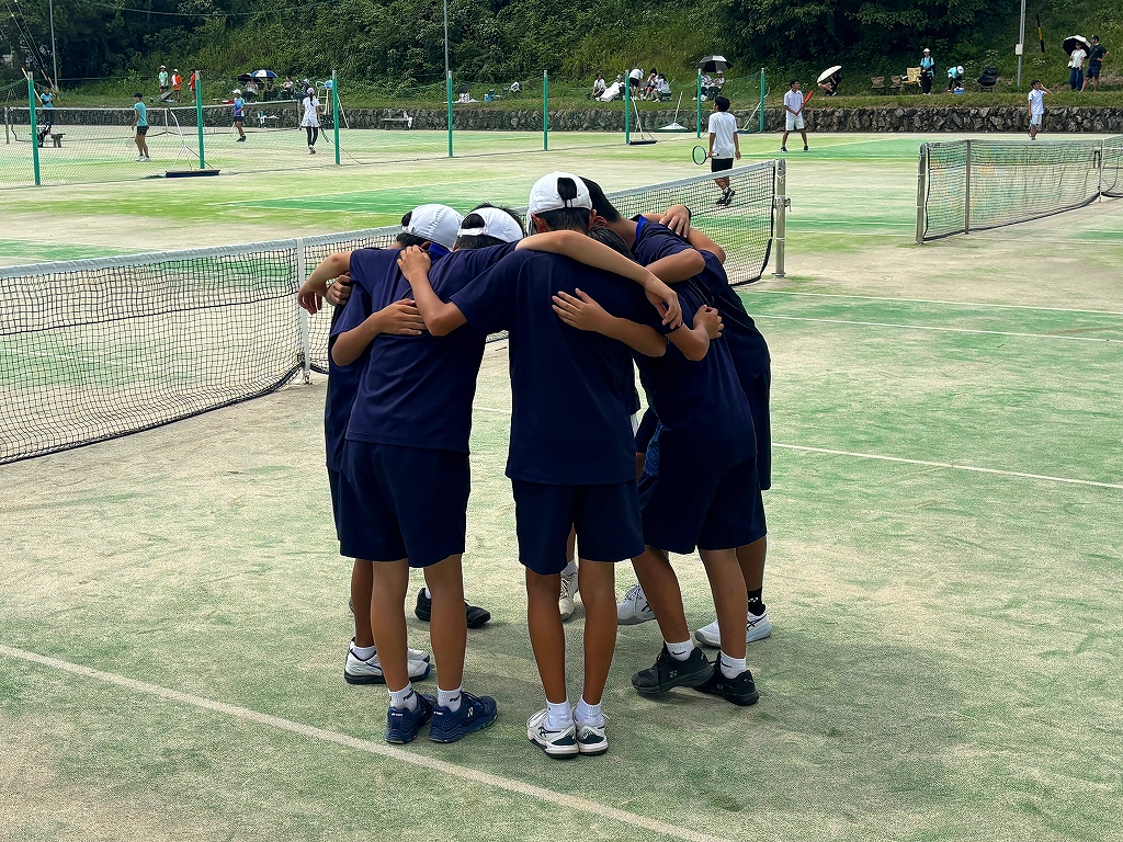 私たち中学男子テニス部は全国大会出場を目標に,練習に励んでいます。