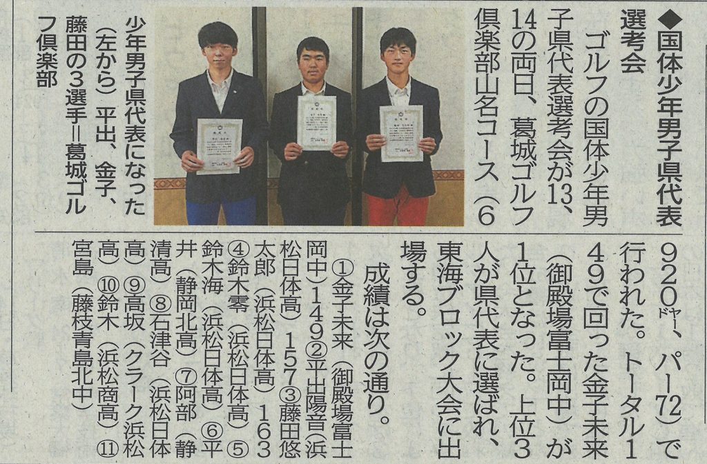 ゴルフ部:国体少年男子の静岡県代表に選出