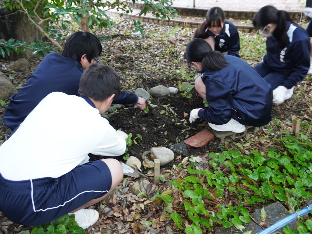 科学研究部(中学) フタバアオイ里帰り式・植栽式を実施しました。
