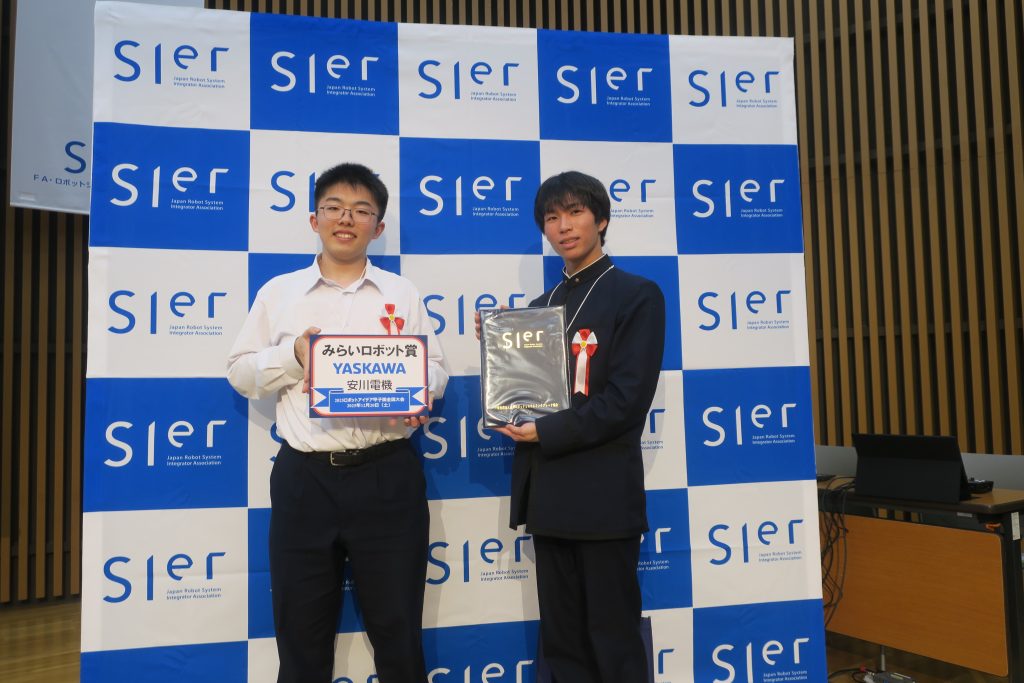 また、近田稜君は特別協賛企業賞として(株)安川電機様(本社 福岡県北九州市)より、YASKAWAみらいロボット賞が授与されました。