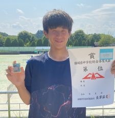 中学男子テニス部:静岡県中学校総合体育大会テニス男子シングルスで志知暖基くんが準優勝