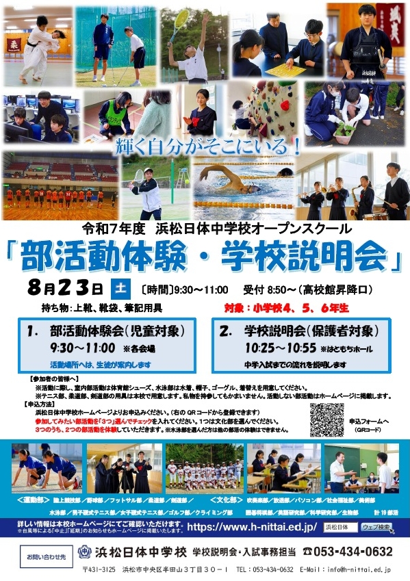 - 2025.03.06 中学校 浜松日体中学校 令和7年度 オープンスクール日程