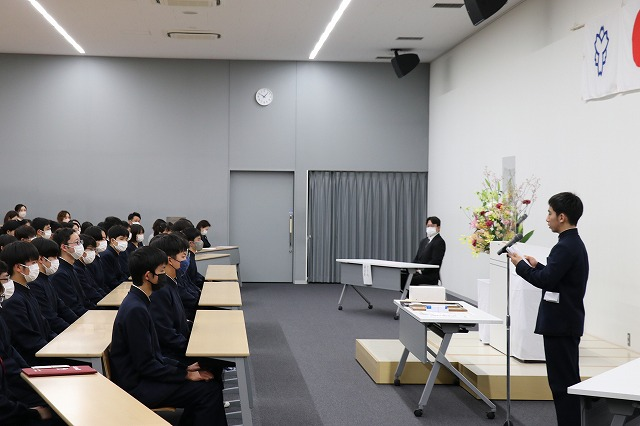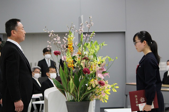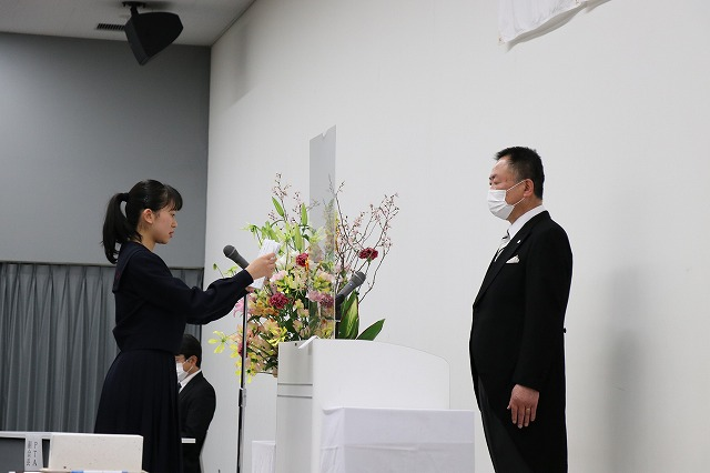 総代の柴山さん以下104名が中学校課程を修了しました。