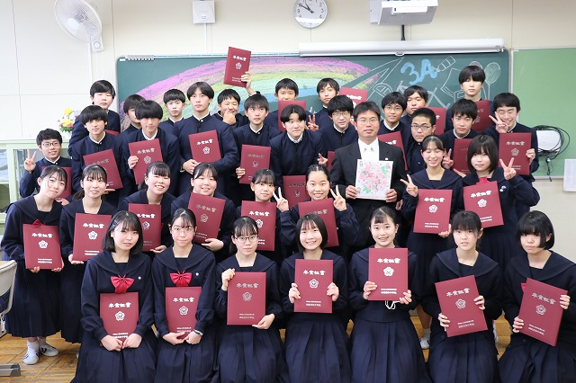 中学19期の3年生が修了式【卒業証書授与式】を行いました。