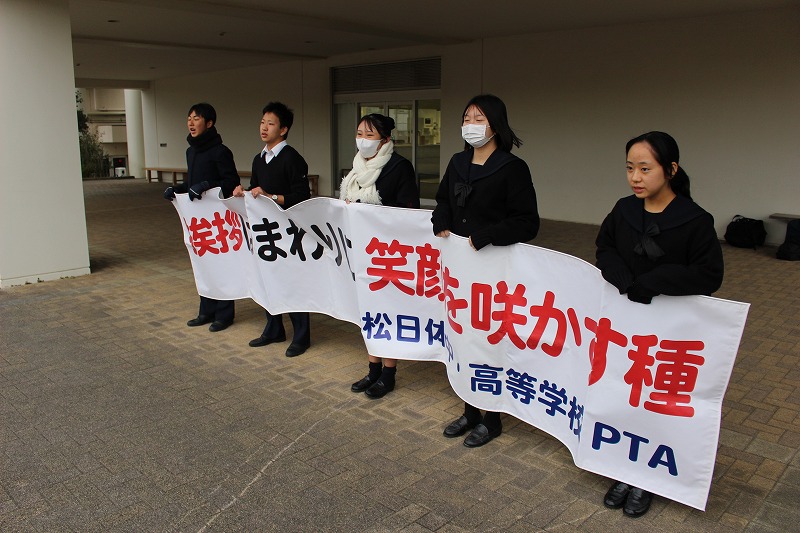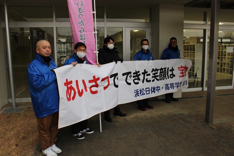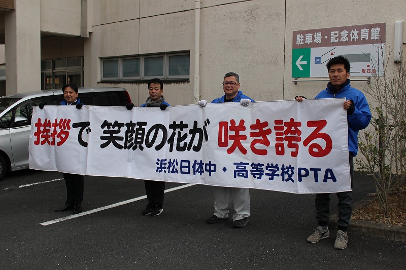 1月18日(木)、今朝は新年最初のPTA朝のあいさつ運動が行われました。