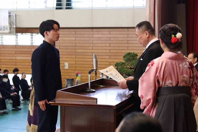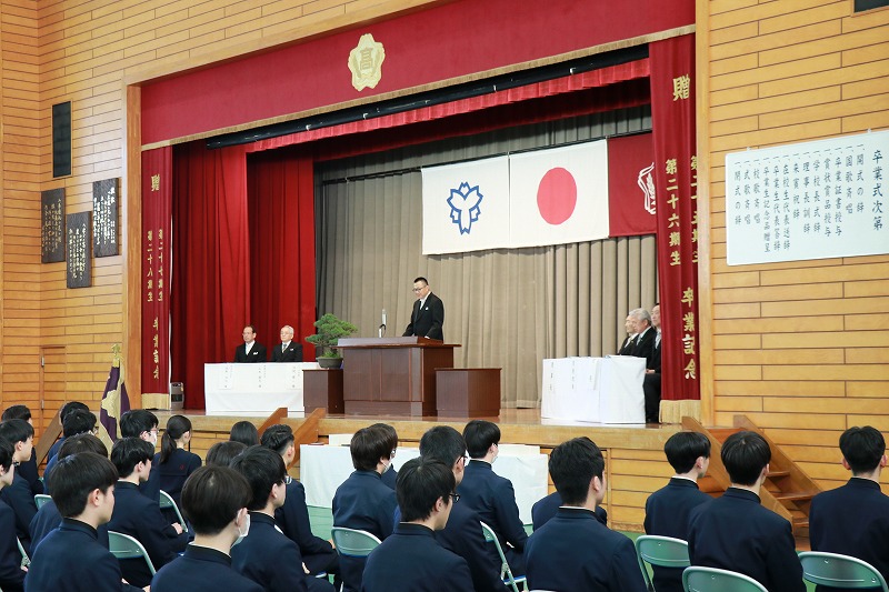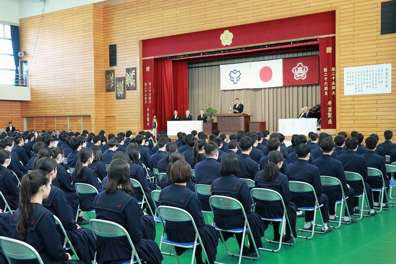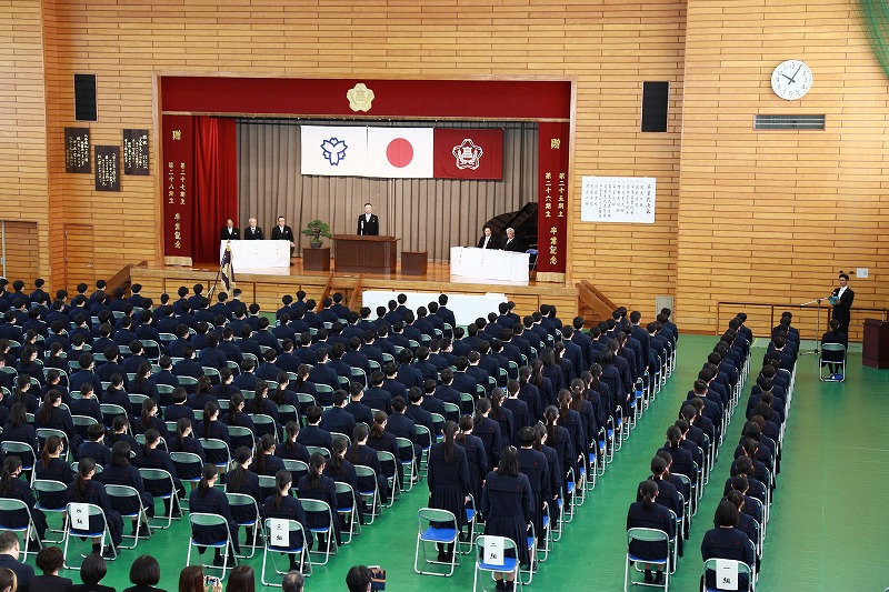 高校卒業式が行われ、厳粛な雰囲気の中、第59期生の門出を祝う式典が催されました。