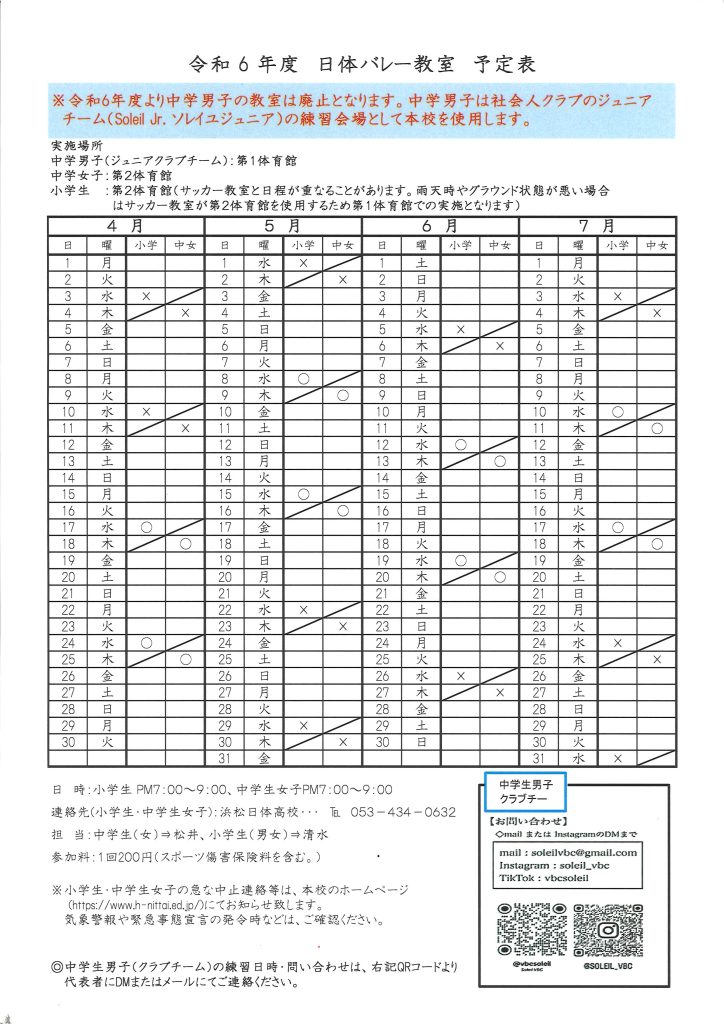 来年度4~7月の中学生対象の女子バレー教室の日程を公開します。