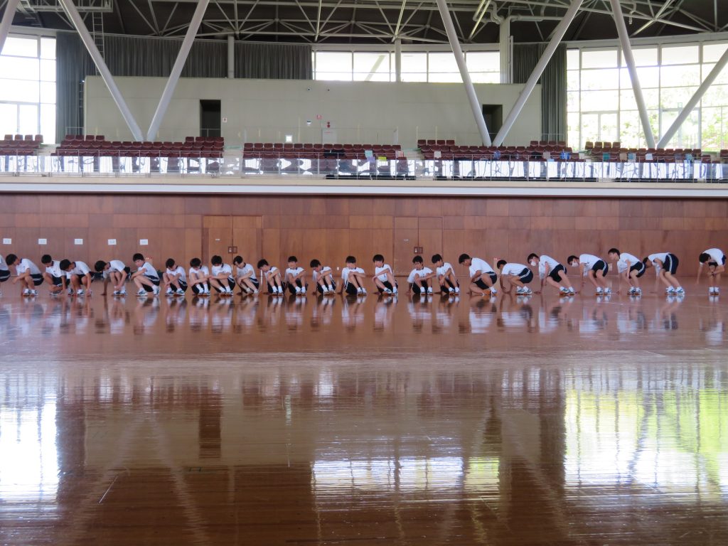 浜北グリーンアリーナでは、生徒会によるレクリエーション、中学3年による集団行動、ソーラン節が披露されました。