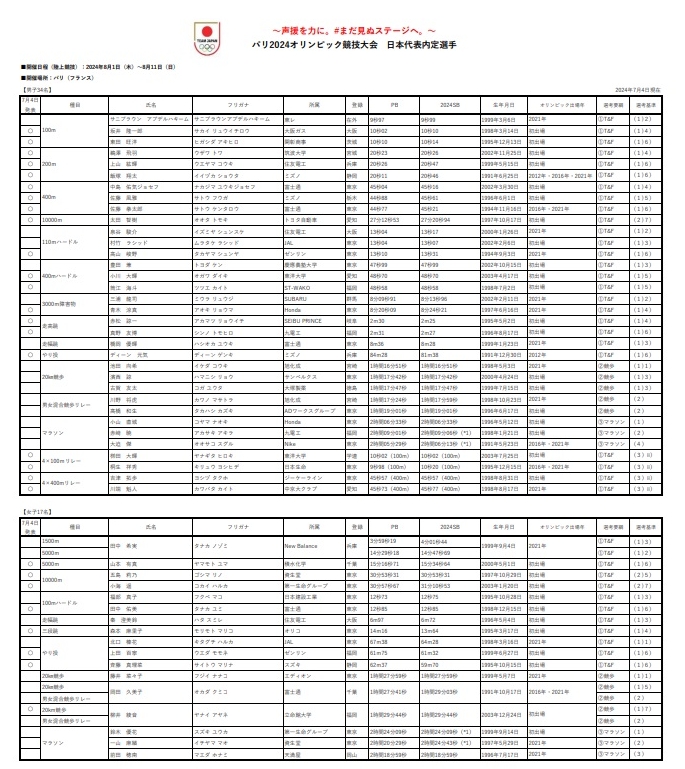 パリ・オリンピックに本校卒業生2名の出場が決まりましたので紹介します。