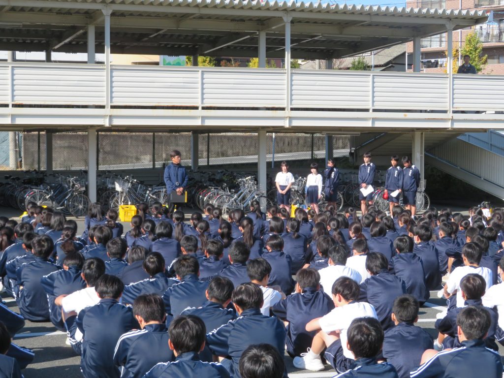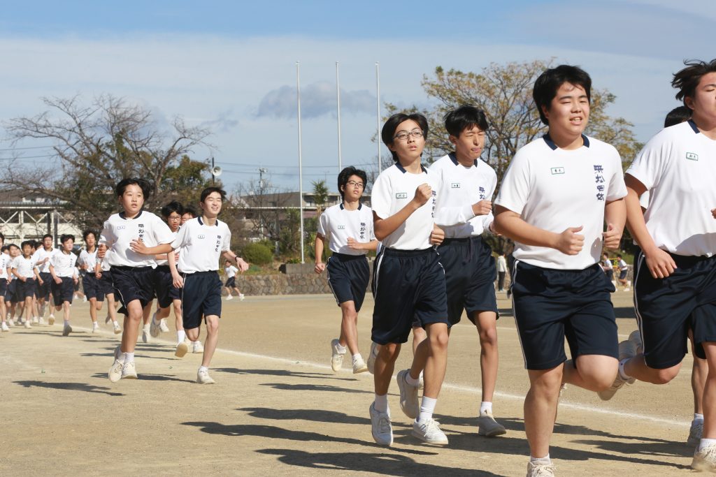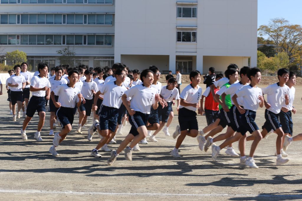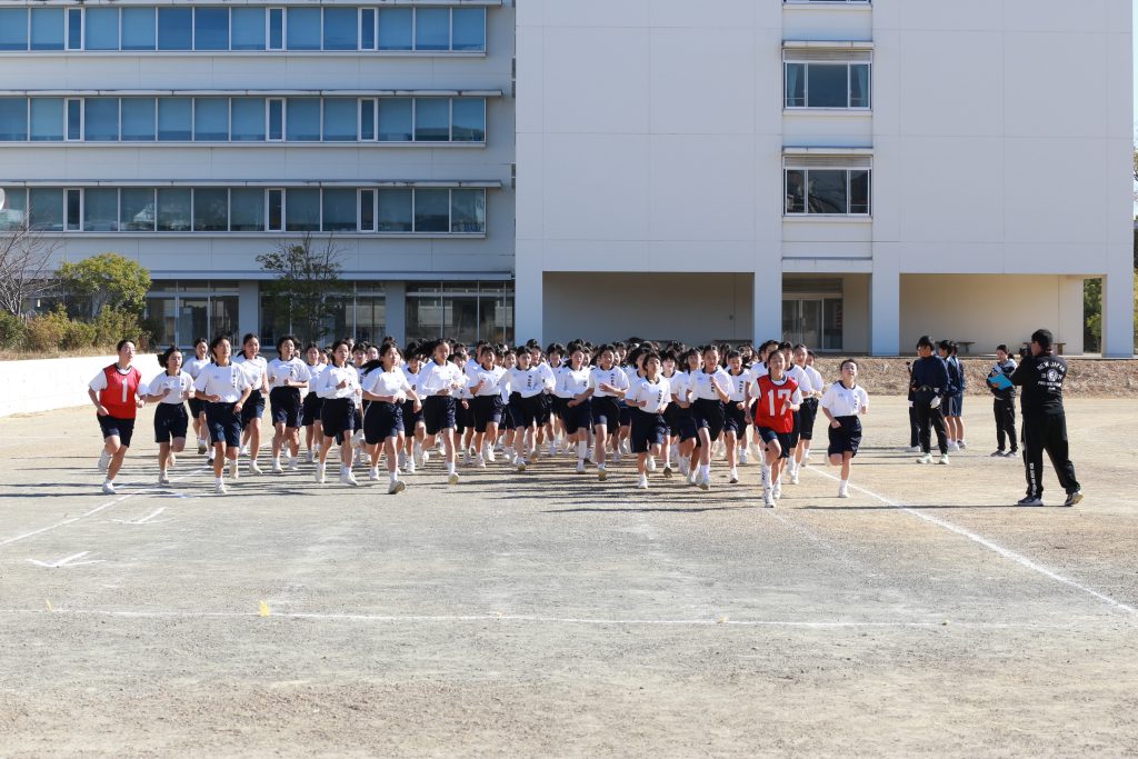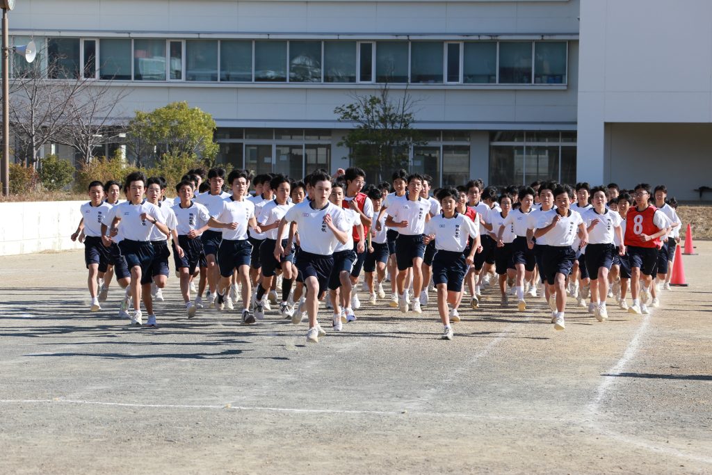 コロナ禍でエコパスタジアムでの実施を中断せざるを得ない状況から、昨年から学校内で距離を設定してのトライアル走というかたちで実施をし、今年は初めて3学年一斉開催となりました。