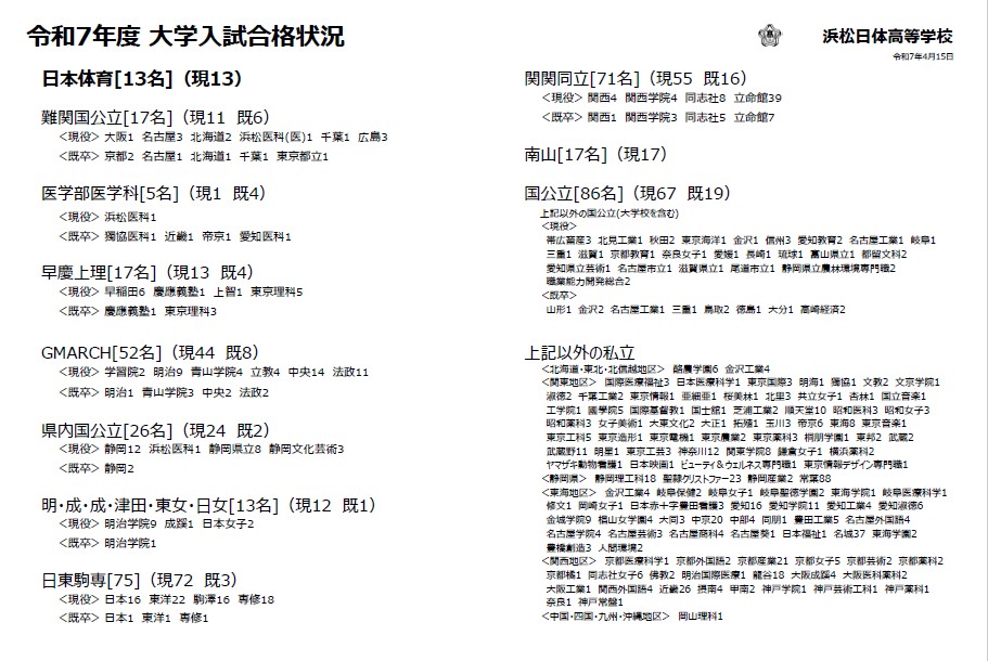 大学合格実績 – 浜松日体中・高等学校