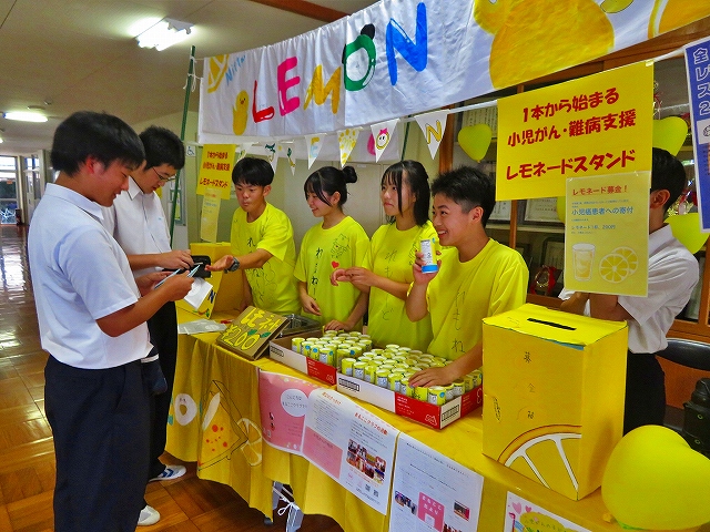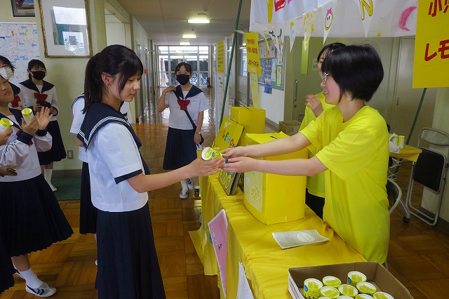 6月7日(土)日体祭にて、浜松日体中学校有志生徒約20名がレモネードの販売を通して小児がん・小児難病支援チャリティーを行い、売り上げから諸経費を引いた利益の全額149,787円を支援団体「まるここクラブ」へ寄付しました。また、この様子を静岡新聞に取材いただき本日6月23日(月)の朝刊に掲載いただきましたので紹介します。(以下の写真は文化祭の様子と寄付贈呈の際に本校職員が撮影したものです)