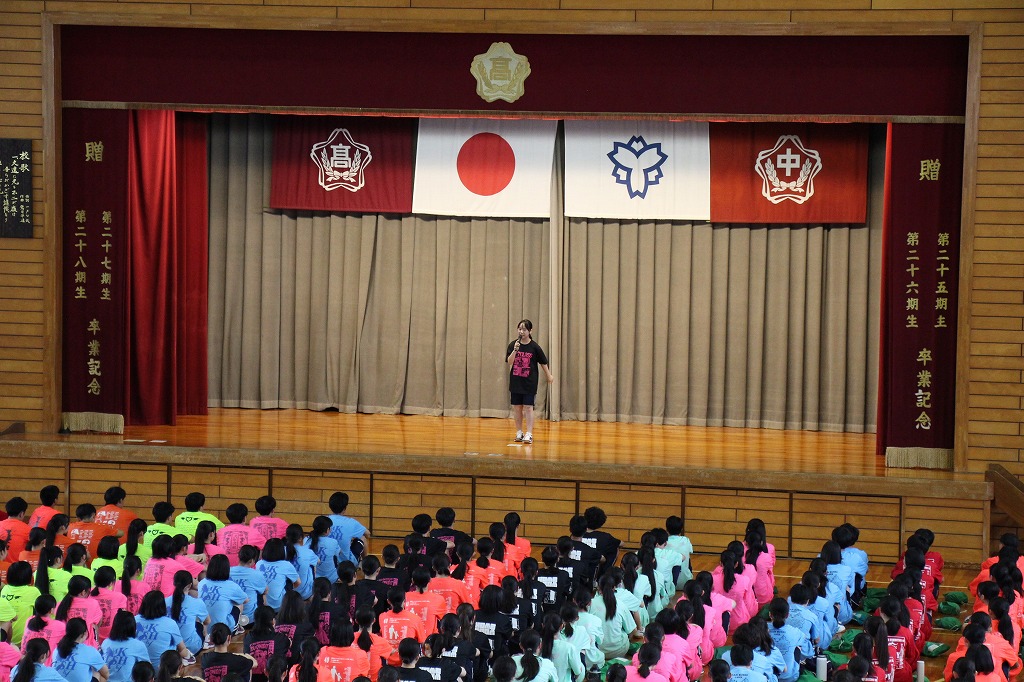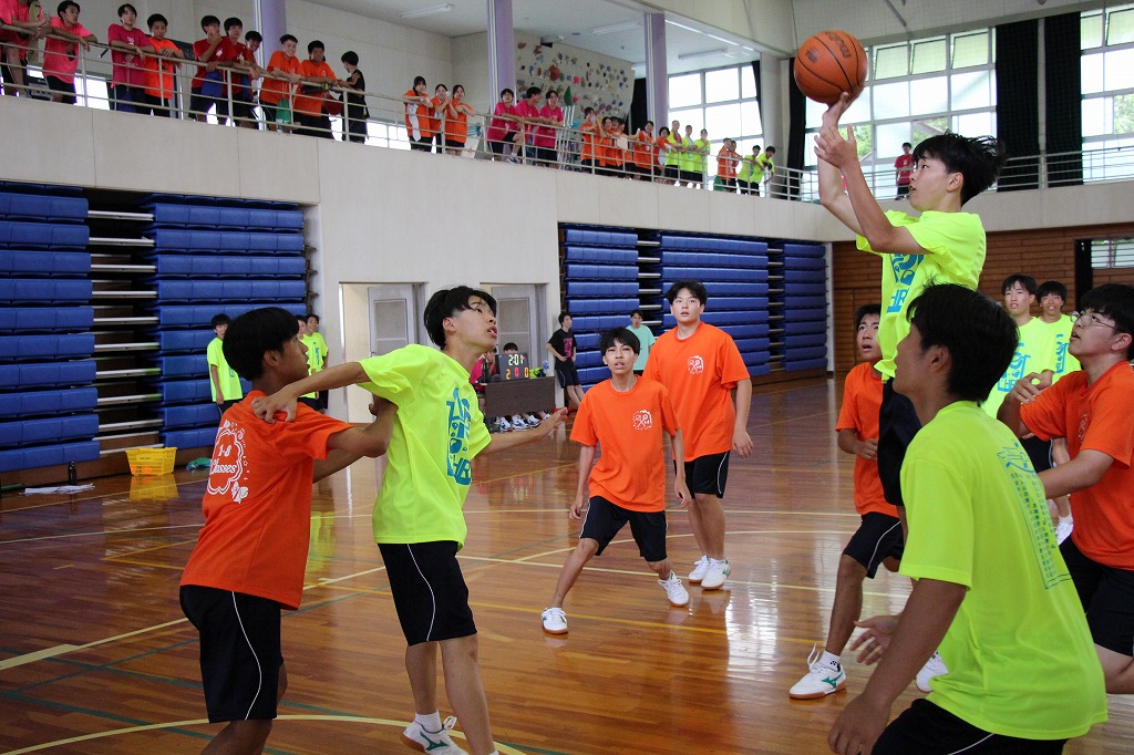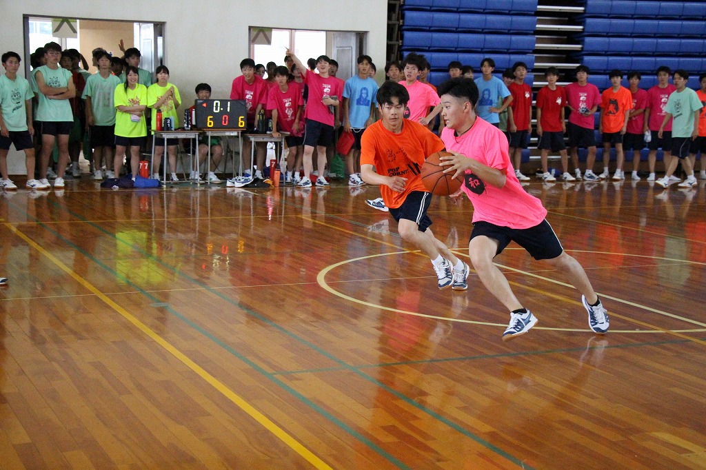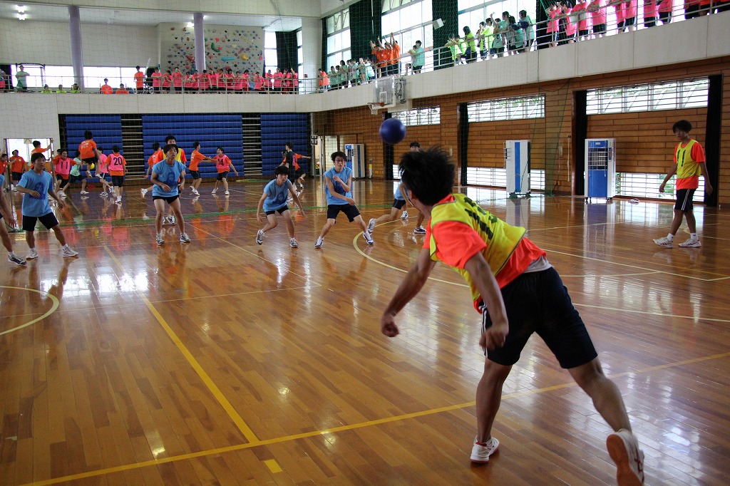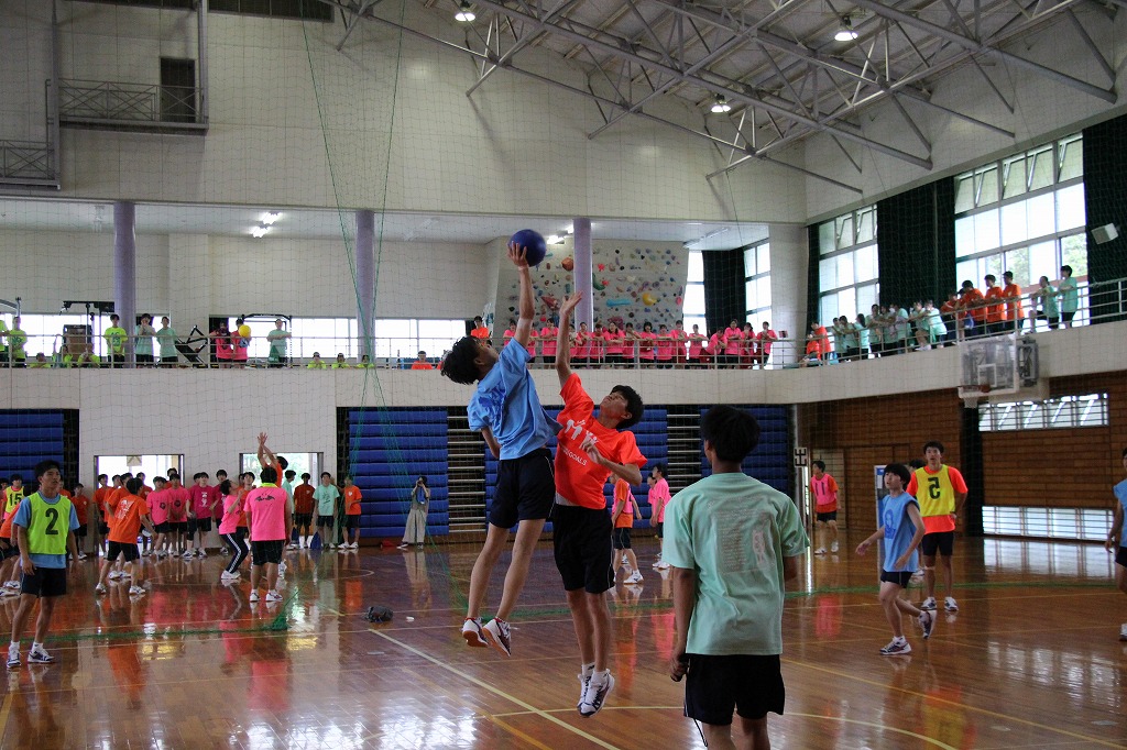 第2回定期考査明けの7月3・4日の2日間で高校球技大会が行われました。体育委員が中心となり、ソフトボール、フットサル、テニス、バスケットボール、バレーボール、ボッチャ、ドッジボールを行いました。クラス別対抗のほかに、縦割3集団に分かれての総合得点を争う形式で、2日間の熱戦を繰り広げました。