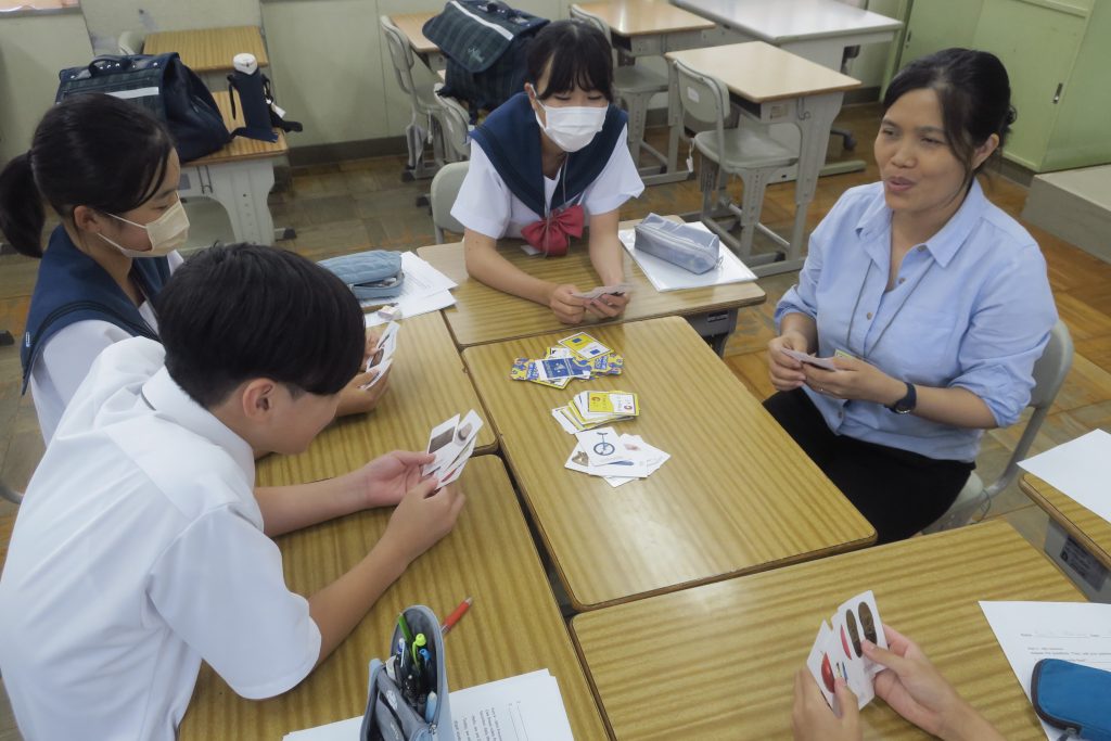 生徒たちは、1日目に学んだことを活かしながら各グループに分かれて場面に応じた会話をロールプレイしたり、自分が興味あることや日常生活、夏休みの出来事についてなどテーマごとに発表したりしました。
