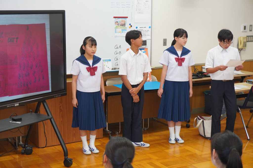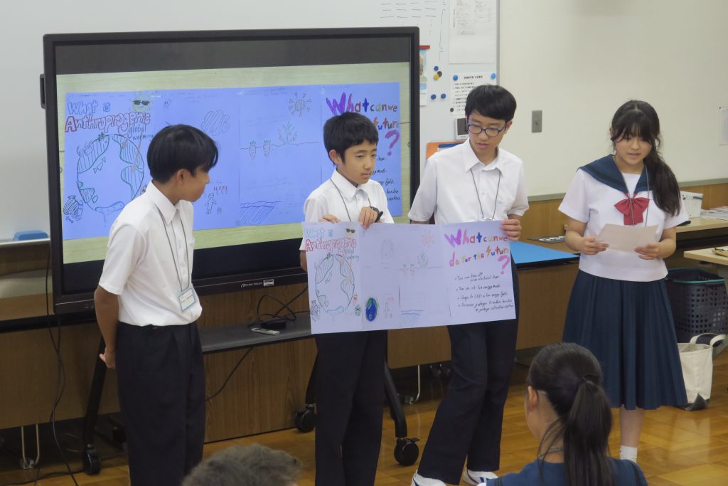 生徒たちはラジオ体操で目を覚ました後、各グループに分かれて環境に関するプレゼン準備をしました。最後に1グループずつテーマごとにポスターを用いながら3日間の成果を参加者の前で一生懸命発表しました。
