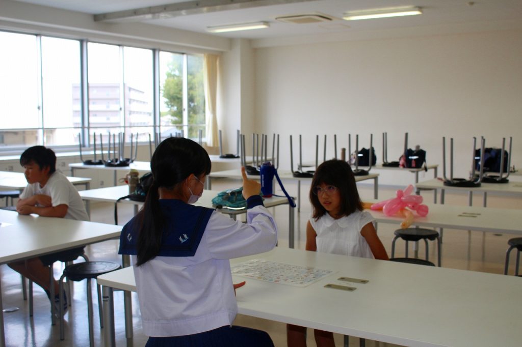 小学生が中学生に教えてもらいながら、2つの部活動を体験しました。