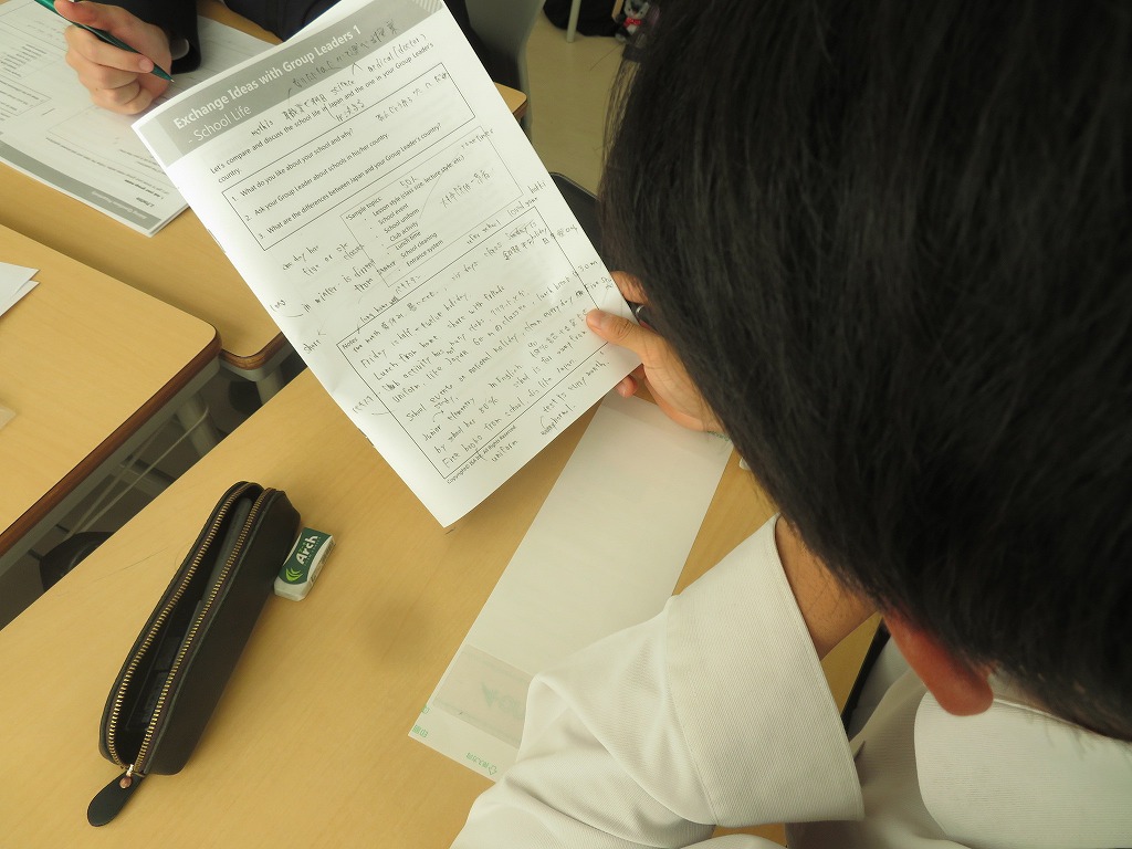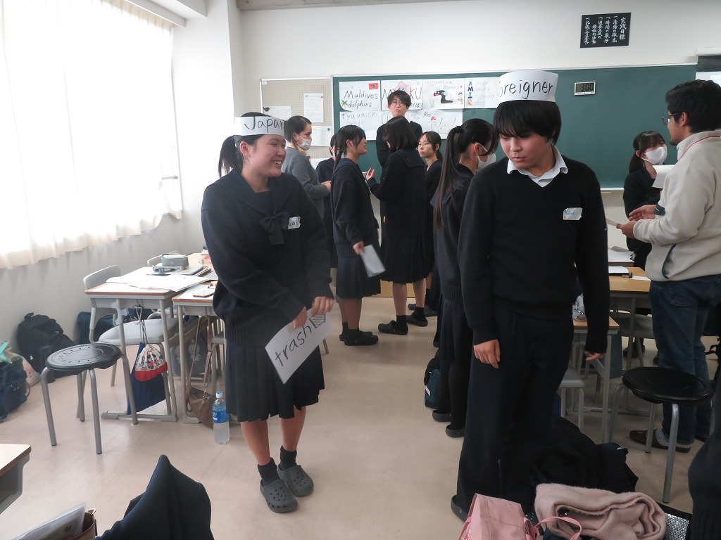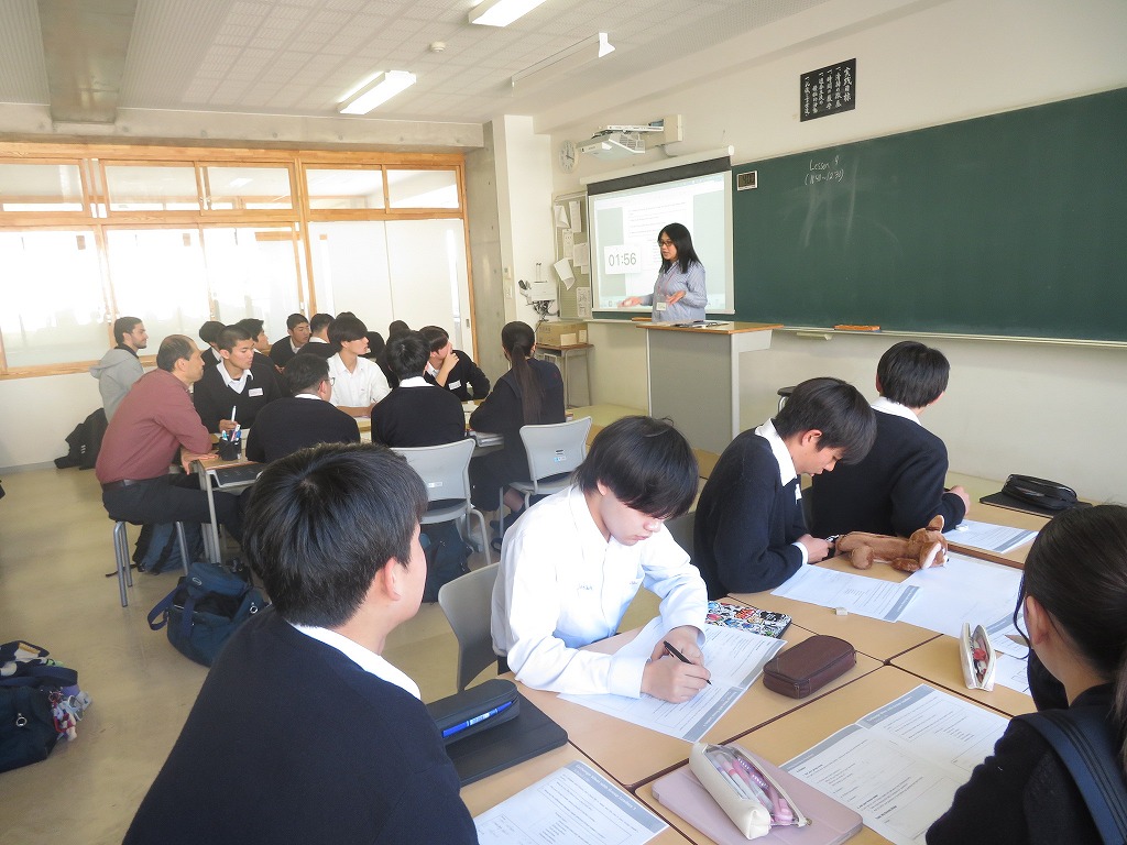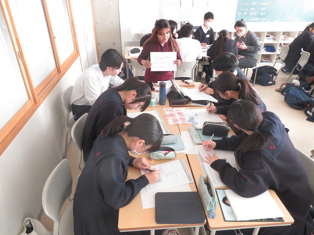 昨日今日で実施クラスを2グループに分けて、高2学年全員を対象とした英語総合演習を行いました。実施するクラスは終日特別日課を組んで、派遣された外国人英語講師とによる会話重視のグループワークや発表などを行いました。