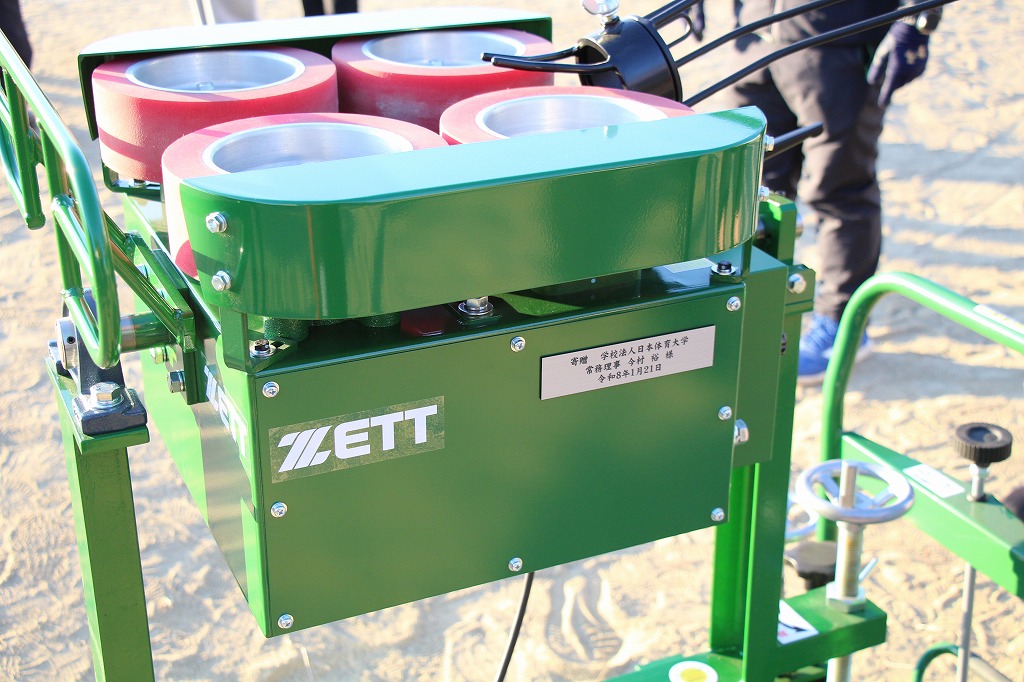 今年度、秋季高校野球大会で創部以来初となる4強入りをはたし、惜しくも東海枠への選出とはなりませんでしたが、21世紀枠静岡県推薦校へ選出されるなど、本校野球部躍進の年となりました。これを受けて、本校を設置する学校法人日本体育大学の今村常務理事より、野球部のさらなる活躍を期待してピッチングマシンを寄贈していただきました。来年度、夏季大会に向けてさらにレベルアップして、今年度を上回る活躍を期待したいと思います。