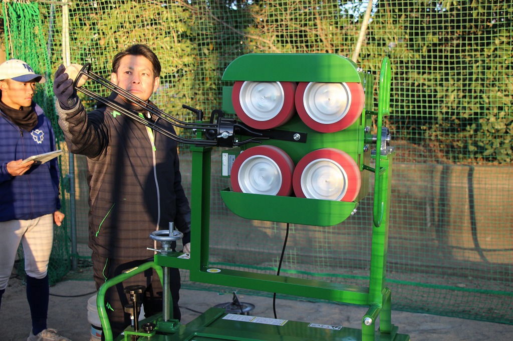 今村常務理事より本校野球部へピッチングマシンを寄贈していただきました(1月21日)