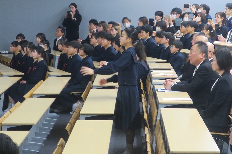 3月14日(土)浜松日体中学校第22回修了式並びに卒業証書授与式を行いました。吹く風が少し肌寒さを感じつつも快晴で暖かな日差しが降り注ぐ良き日、思い出に残る式となりました。式後には学年合唱「正解」を披露して、人生の区切りとなる式典にて、家族に対してここまで育ててくれたお礼を改めて伝えました。