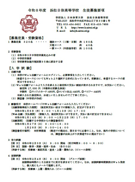 中高「令和8年度生徒募集要項」の公開