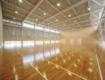 アリーナ(2F)と武道場、多目的室(1F)等を備えた体育館。3Fの壁面はクライミング施設になっています。