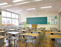 明るく開放的な教室です。机と椅子は自分で高さを調節しながら3年間使用します。
