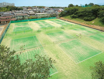 水はけのよい砂入り人工芝(オム二コート)が6面あります。